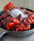 Sweet and spicy taste sprinkled with snowflake cheese. Served with rice, kimchi, seokbakji, and pickled onions.